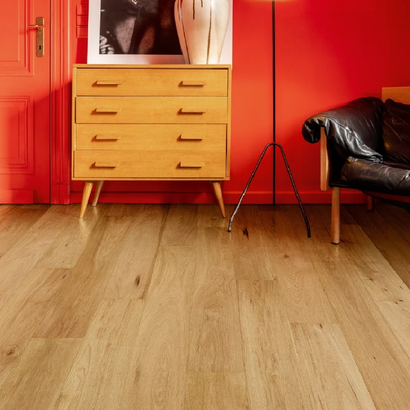 Le parquet bois Alternative Clic15 Home Natmat est conçu pour répondre aux attentes des clients recherchant un parquet contrecollé avec peu de nœuds, mais avec des lames nuancées en couleur pour un effet plus authentique. Son système de clic facilitera l'installation, et sa couche de bois massif de 4 mm garantira une durabilité exceptionnelle.