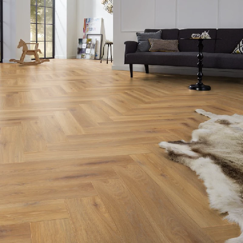 Ce sol stratifié en bâton rompu mettra en valeur vos pièces avec un aspect d’art déco et d’art nouveau. C’est ainsi que, en combinaison avec un aménagement intérieur moderne, il sera possible d’obtenir pour votre intérieur des contrastes séduisants entre tradition et modernité, entre tendance et histoire