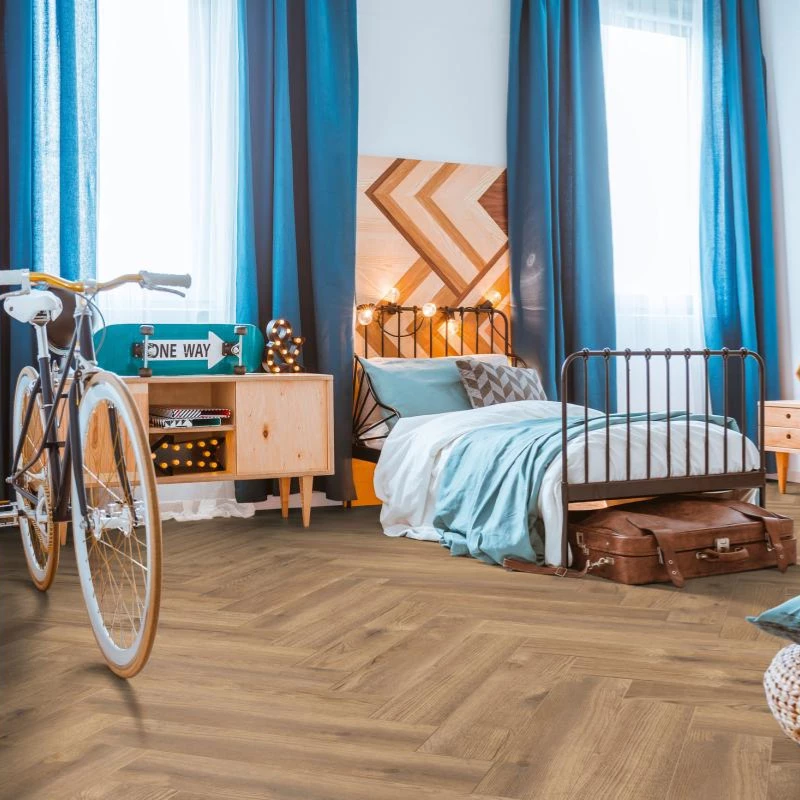 Ce sol stratifié en bâton rompu mettra en valeur vos pièces avec un aspect d’art déco et d’art nouveau. C’est ainsi que, en combinaison avec un aménagement intérieur moderne, il sera possible d’obtenir pour votre intérieur des contrastes séduisants entre tradition et modernité, entre tendance et histoire