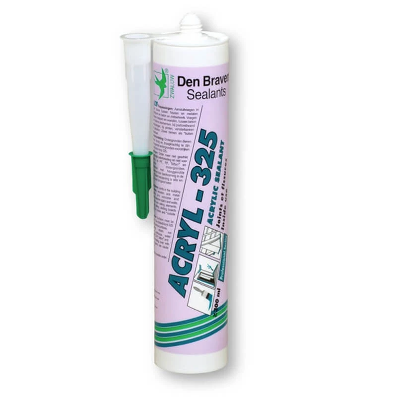 Mastic acrylique étanchéité joints et fissures, peut être peint, adhère sur la majorité des supports.
