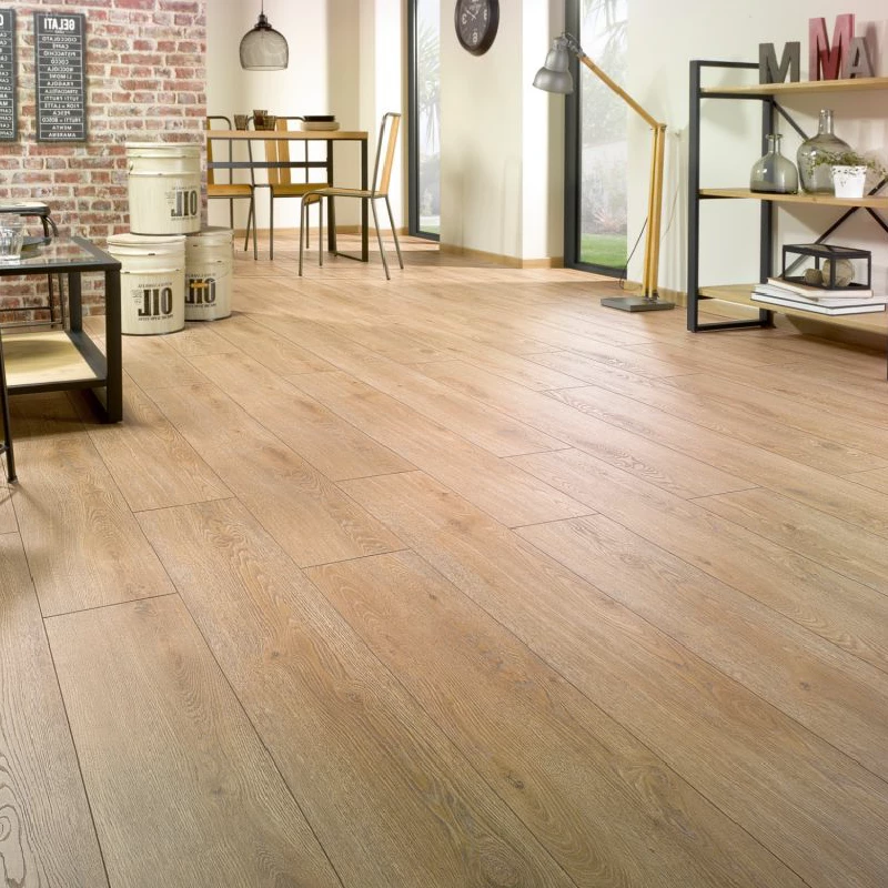 Laissez-vous envouter par ce magnifique parquet flottant à clipser. Grâce à ces lames clipsables de 1286 mm de longueur, 214 mm de largeur, 12mm d’épaisseuret son nouveau système de clipsage révolutionnaire : 5G,elles s’adapteront à tous les usages. Vous serez conquis par ses qualités de résistance aux chocs et aux produits chimiques. Vous allez adorer l’aspect chaleureux de son motif chêne pralin. La présence de nœuds dans le motif chêne renforce son aspect naturel et authentique. Il donnera un petit côté accueillant et très chaleureux à votre maison en un seul clic ! Il sera parfait aussi bien pour le sol de votre chambre, comme pour le sol de votre salle à manger, ou votre couloir.