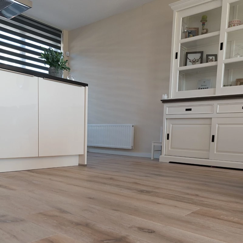 Le parquet contrecollé Rustica Blanchi se distingue par son caractère authentique avec des noeuds, des fissures et des rainures qui s'érodent manuellement. Un travail artisanal pur !