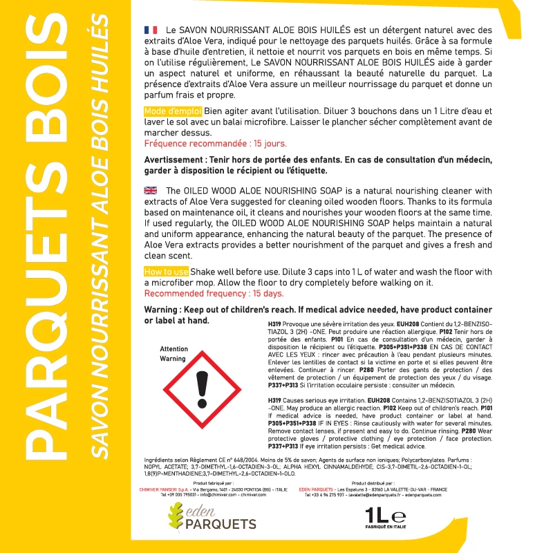 Savon Nourrissant Aloe Bois Huilés 1L Indiqué pour les parquets bois huilés