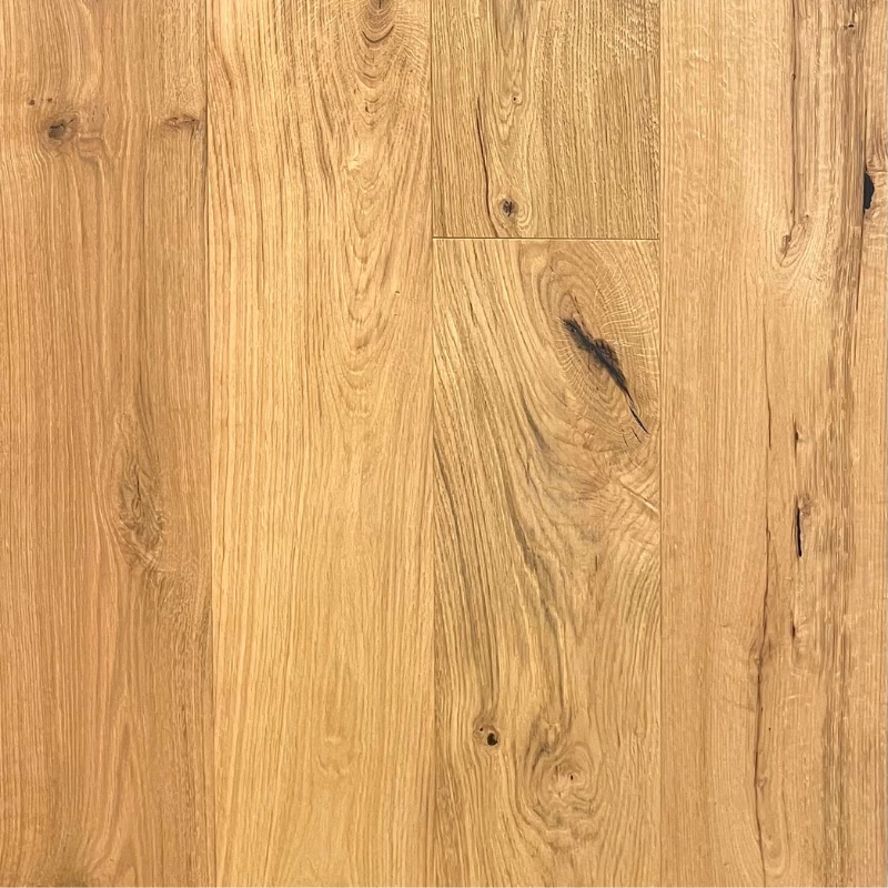 Le parquet en bois Canyon Bois Brut est idéal pour répondre aux attentes des clients recherchant un parquet contrecollé avec un aspect extra rustique avec fentes et nœuds rebouchés noirs, offrant ainsi un aspect authentique. Son système de clic simplifie la pose, tandis que sa couche de bois massif de 3 mm assure une durabilité remarquable.