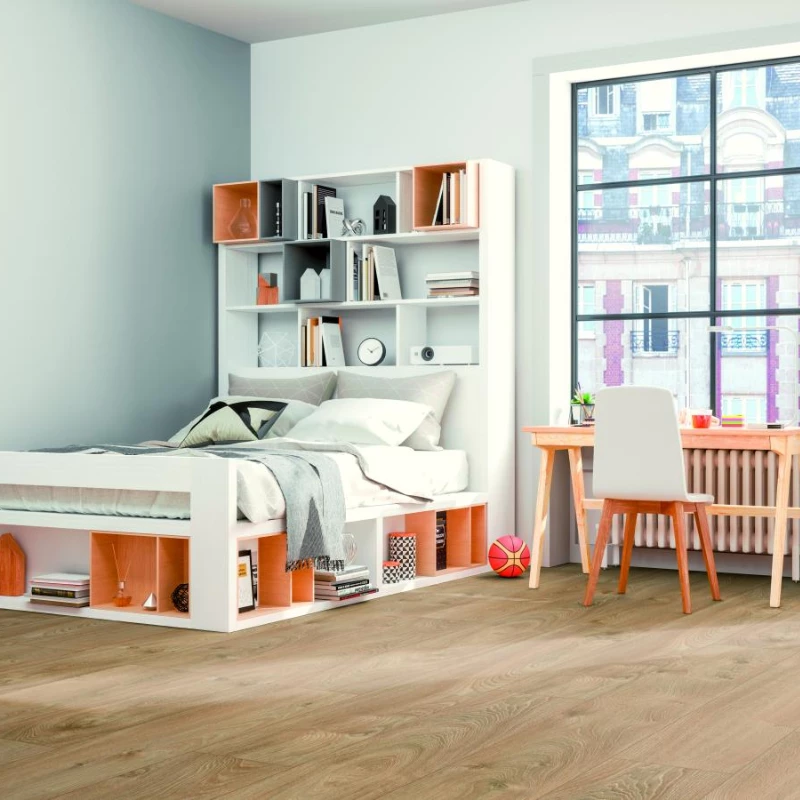 La gamme SWISS SOLID CHROME séduit par des parquets aux excellentes propriétés de matériaux et de leur aspect bois véritable naturel. Cela crée une ambiance de bien-être dans chaque pièce et peut être utilisé de multiples façons. Les 4 chanfreins soulignent chaque lame. De plus, ces stratifiés possèdent des propriétés antistatiques. Leur surface est particulièrement résistante aux rayures et convient donc également aux zones fortement sollicitées. Ces parquets de haute qualité sont résistants et robustes et leur système de clic 5G pratique simplifie la pose.