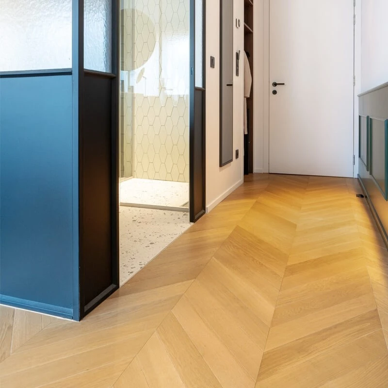 Le parquet bois interieur en chêne Point de Hongrie sans nœuds incarne l'élégance et l'excellence. Eden Parquets, votre expert en revêtements de sol, a choisi pour vous ce parquet d'exception : son motif en chevrons apporte une touche de raffinement intemporel à n'importe quel espace. Fabriqué à partir de chêne de haute qualité, ce parquet est reconnu pour sa beauté naturelle, sa résistance et son absence de nœuds, ce qui en fait un choix idéal pour ceux qui recherchent un intérieur à la fois élégant et durable.